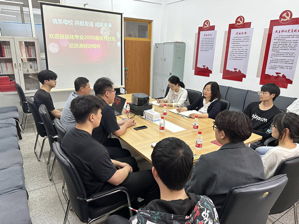 座谈会上,缪新颖代表学院对优秀校友的到访表示热烈欢迎。纪洪涛表达了对母校的感激之情。他表示,是母校为他提供了宝贵的学习机会和平台,培养了他的专业素养和综合能力,感谢母校领导和老师们的关心与支持,让他能够在职业生涯中不断进步和发展。随后,他回忆起自己在校期间的点点滴滴,对母校的快速发展和取得的成就表示由衷地骄傲和赞叹。在座谈过程中,他与师生们亲切交流,分享了自己在自动化领域的经验和心得。