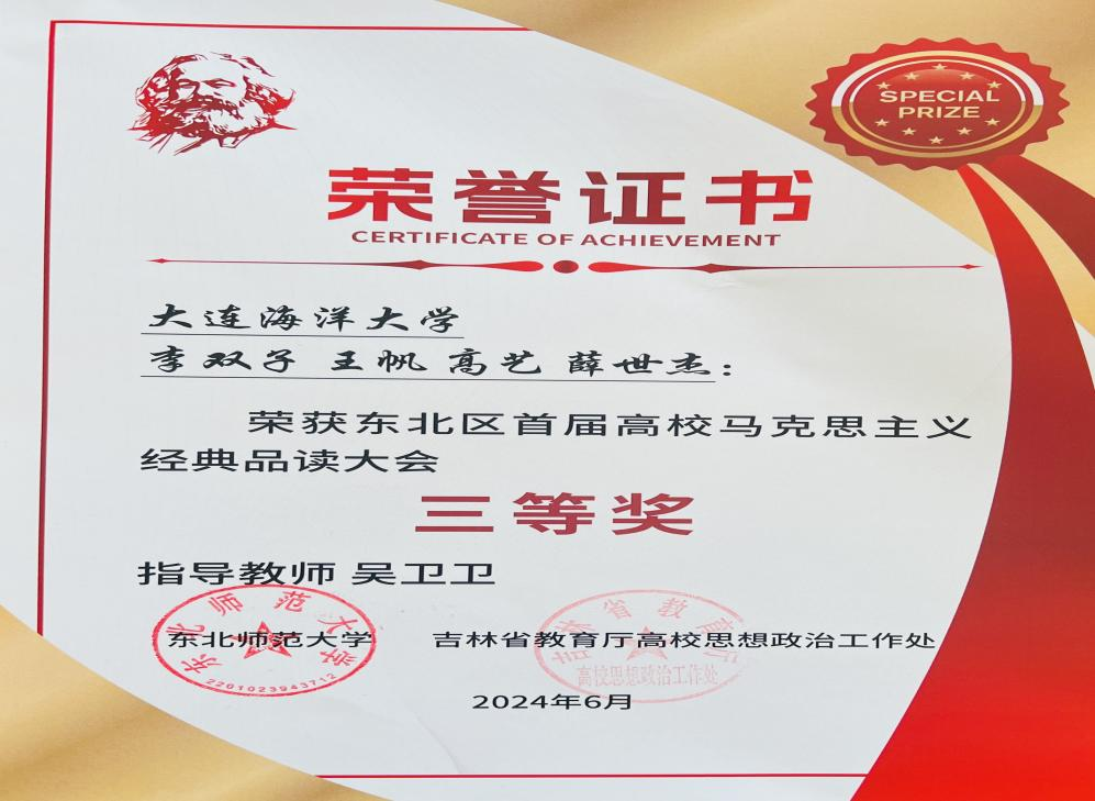 本次大赛由辽宁省教育厅思想政治工作处、吉林省教育厅高校思想政治工作处指导,面向东北三省一区的39家马克思主义学院(部)举办。经过初赛、复赛、决赛环节,学院研究生李双子、薛世杰、王帆、高艺组成的代表队荣获三等奖。