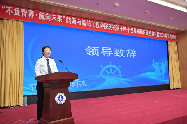 学院院长隋江华在致辞中表示,在第十四个“世界海员日”到来之际,向奋斗在世界各地海运一线的航船人以及所有海员朋友们致以问候;对以推动航海教育高质量发展为己任,辛勤耕耘的教师们表示感谢;向在第二届“匠心演武·逐梦海洋”航海类专业实践技能比武活动和学院各类活动中取得优异成绩的同学们表示祝贺;对圆满完成学业、即将奔赴新征程的全体2024届毕业生,送上美好的祝福。