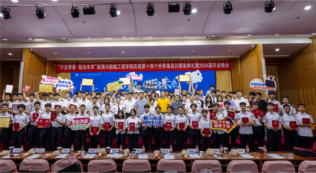 为深入贯彻落实习近平总书记海洋强国战略思想,大力营造关心海洋、关爱海员的良好氛围,积极助力“一带一路”和海洋强国、海洋强省建设,近日,航海与船舶工程学院于图书馆报告厅举办“不负青春 航向未来”庆祝第十四个“世界海员日”颁奖典礼暨2024届毕业晚会。辽宁海事局船员处处长饶滚金,香港太平洋航运集团有限公司中国区总经理聂来宝、船队人事副经理高岩,大连华洋海事有限公司经理张广池,中国大连国际经济技术合作集团有限公司航业分公司副总经理张慧,大连国合海事技术服务有限公司经理毕崇峰,大连森海海事服务有限公司总经理李双出席活动。学院领导老师、各年级学生参加活动。