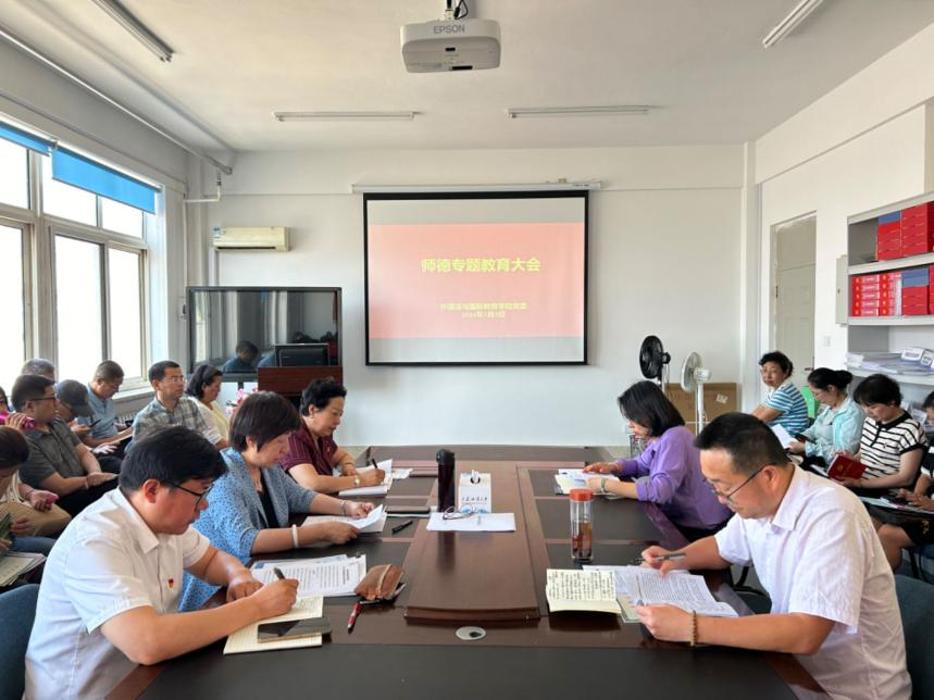 7月3日,外国语与国际教育学院在学院会议室召开师德专题教育大会。学院全体教职工参会。会议由学院党委书记邓艺主持。