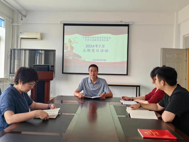 7月10日,外国语与国际教育学院党委各教师党支部在学院党员活动室组织开展了七月党日活动。会议由各支部书记主持。