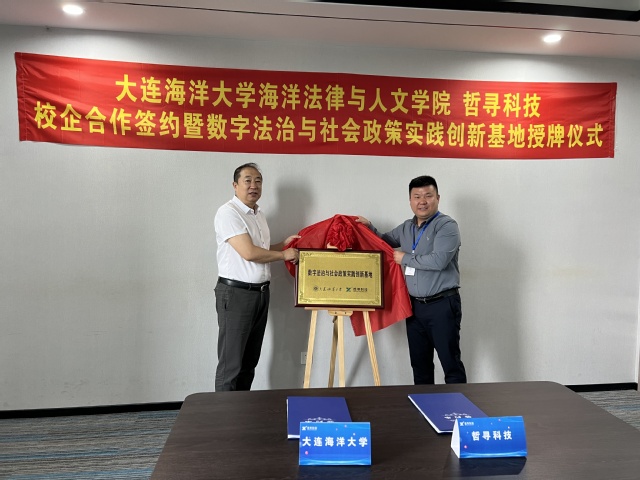 近日,海洋法律与人文学院教师受邀参观考察上海哲寻信息科技有限公司,并举行了教育部就业育人实践基地签约暨数字法治与社会政策实践创新基地揭牌仪式。海洋法律与人文学院院长裴兆斌教授、纪委书记蔺妍副教授,党委宣传部副部长、社会政策专业负责人刘洋教授;上海哲寻信息科技有限公司总经理尹朝辉、销售总监王继成、大区经理张传永、科技副总经理徐坤出席本次活动。
