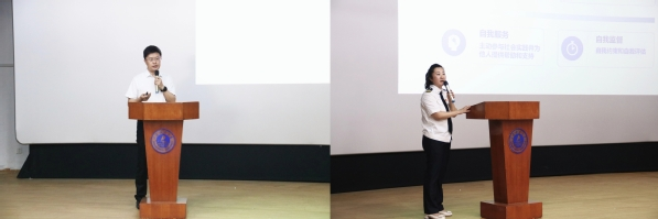 陈禹娜从新生入学相关教育安排、思想政治教育、学生日常管理及准军事化管理等方面展开介绍。她强调,作为新一代航船学子,大家要延续学院的优良传统,认真执行学院准军事化管理的相关制度,学院也将全力支持每一位同学的成长与发展,为大家的蓝色梦想保驾护航。