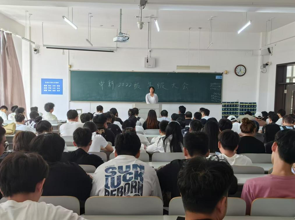 近日,中新合作学院在獐子岛教学楼107教室召开2022级学生年级大会。2022级全体同学参加,会议由学院党总支副书记、2022级辅导员沙雷主持。