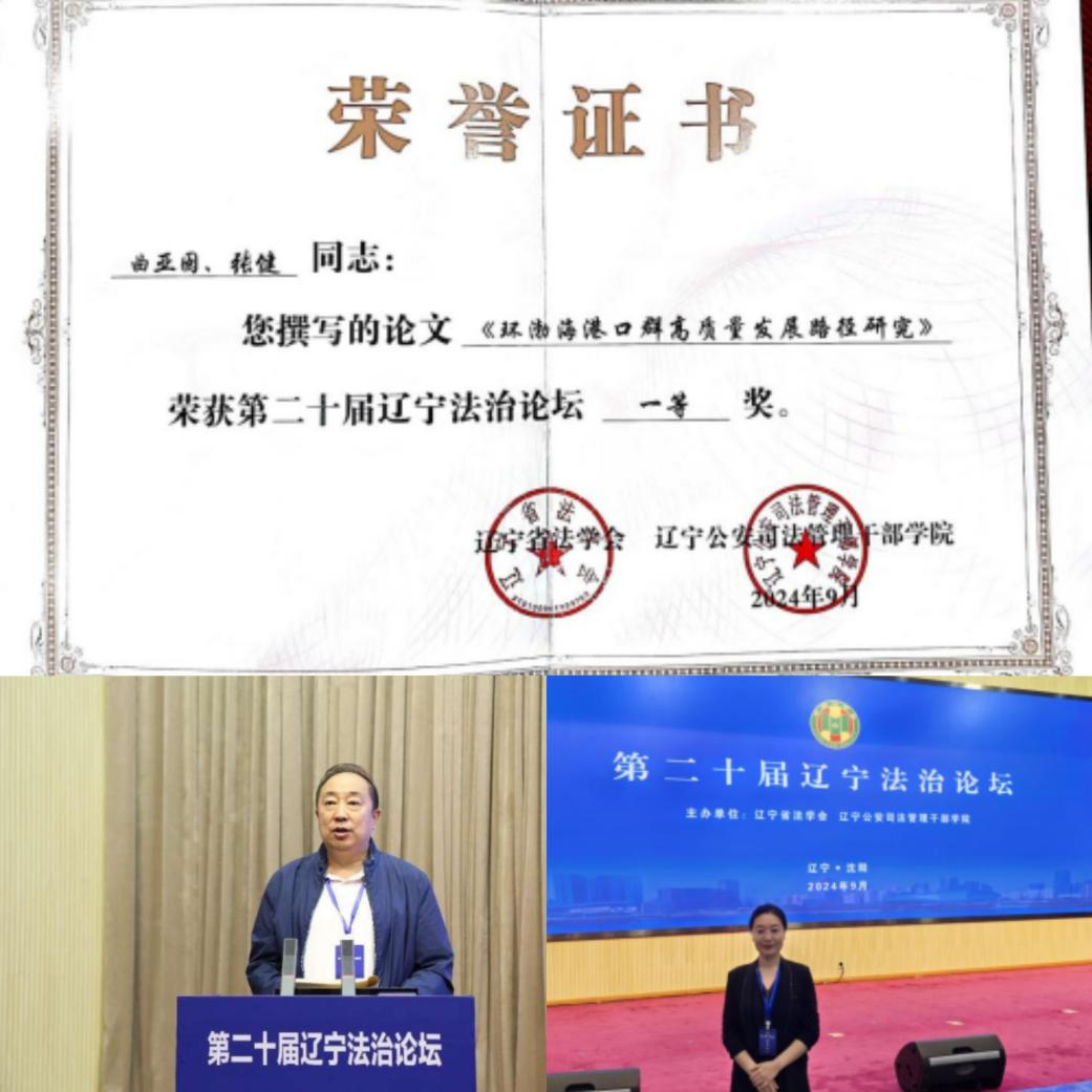 9月19日,由辽宁省法学会、辽宁公安司法管理干部学院共同主办的第二十届“辽宁法治论坛”在沈阳举办。我校海洋法律与人文学院裴兆斌教授受邀参会并作点评;曲亚囡教授作了《辽宁港口群高质量发展路径研究》的主题报告。海洋法律与人文学院多名师生在本次论坛中获奖。