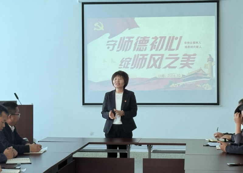 谭利娟以《守师德初心,绽师风之美》为题,围绕“违反师德师风案例”“守教育初心正师德师风”“重温习近平总书记关于师德师风的重要论述”“争做新时代‘四有’好老师”四部分内容作了专题报告。她叮嘱全体教师“要把师德师风建设摆在首要位置,引导广大教师继承发扬老一辈教育工作者‘捧着一颗心来,不带半根草去’的精神,以赤诚之心、奉献之心、仁爱之心投身教育事业”,要牢记“为党育人、为国育才”使命,从思想上、行动上进一步提高师德师风意识,营造风清气正的师德师风氛围。