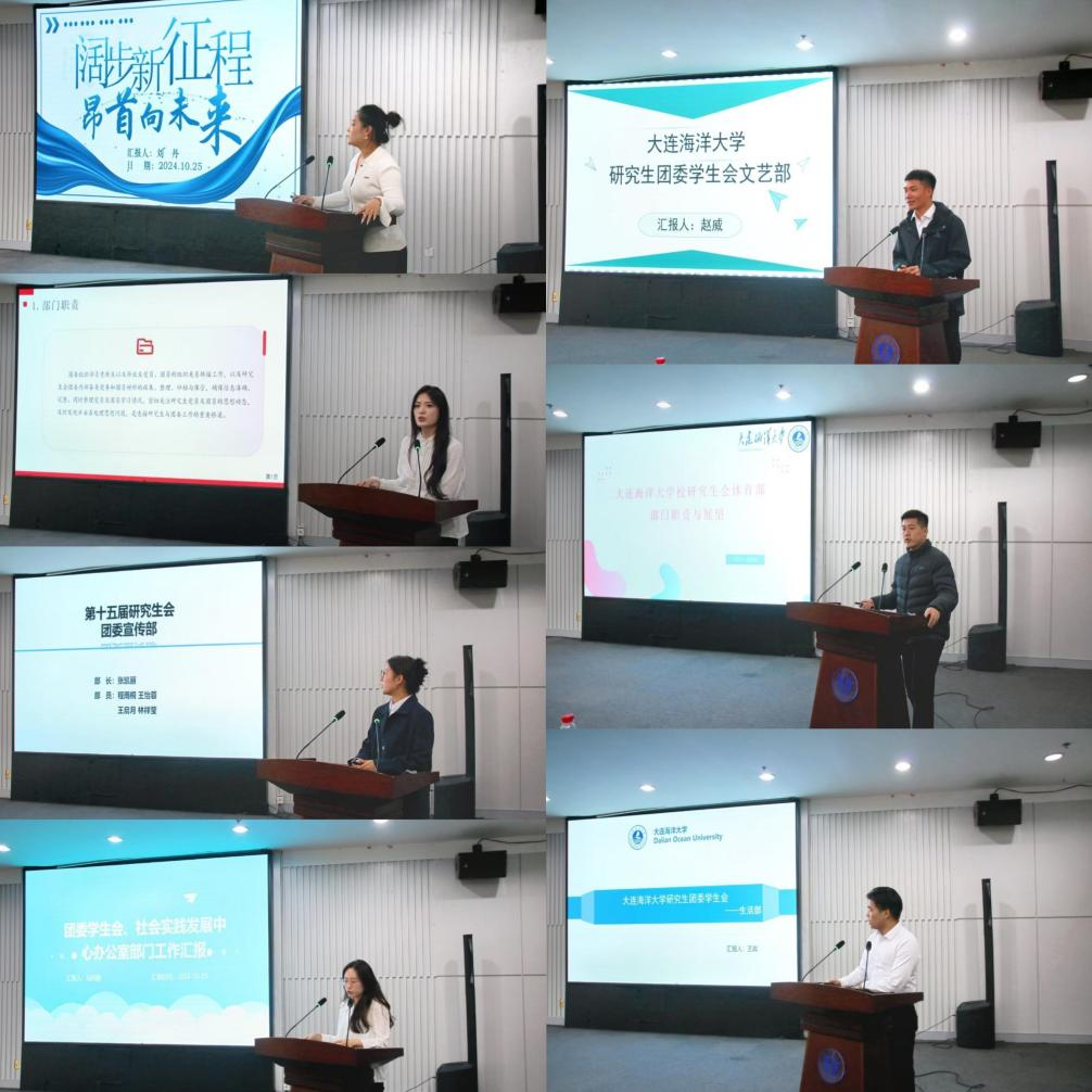 随后,由研究生团委学生会团委副书记刘丹做“阔步新征程,昂首向未来”的主题工作汇报,并表示在未来要秉承“畅通、植根、优化、立新”的工作理念继续服务同学。紧接着,各部门负责人依次上台,围绕部门工作职责、过去一年的工作总结以及对未来的规划进行汇报。
