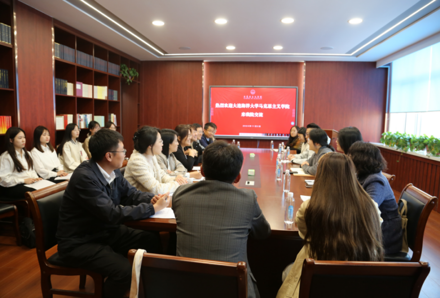 11月2日,马克思主义学院党总支副书记吴卫卫、副院长冯文艳带队青年骨干教师及理论宣讲团成员赴辽东学院马克思主义学院开展交流座谈。