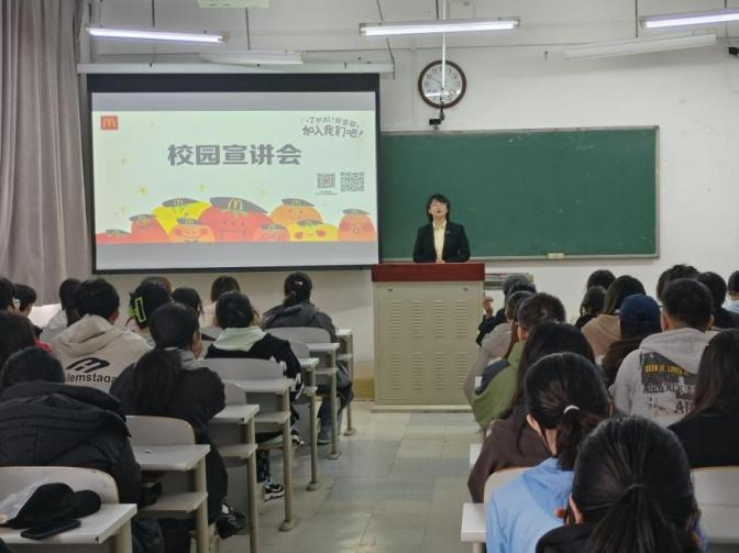 为进一步拓宽学院毕业生的就业渠道,为2025届毕业生寻找更多就业机会,增强毕业生就业能力,11月10日,经济管理学院在大黑石校区2-215教室举办了麦当劳校园招聘宣讲活动。大连麦当劳招聘中心负责人金莅担任主讲人,农林经济管理专业教师李扬、2021级来自会计学、经济与金融、农林经济管理、市场营销近100名毕业生参会。
