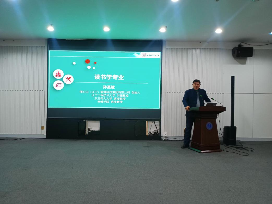 11月19日,海洋与土木工程学院邀请大连海心山能源科技有限公司孙圣斌董事长在图书馆多功能厅以《读书学专业》为题作了专题报告。学院副院长张殿光、纪委书记张琨、建筑环境与能源应用工程专业师生共100余人参加会议。报告会由张殿光主持。