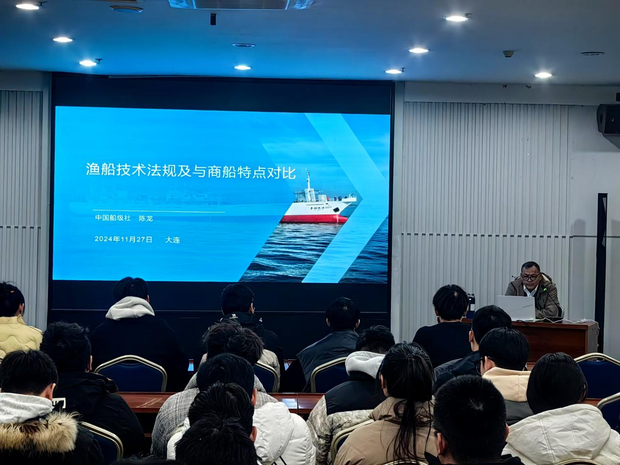 11月27日,航海与船舶工程学院于图书馆多功能厅举办耕船耘海大讲堂之《渔船技术法规及与商船特点对比》专题讲座。此次讲座特邀CCS指导验船师陈龙高工主讲。学院2024级研究生积极参与。