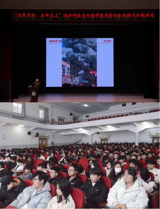 为深入贯彻落实习近平总书记关于安全生产和消防安全重要指示批示精神,全面落实消防安全责任,夯实筑牢校园安全基础,11月20日,海洋科技与环境学院于黑石礁校区俱乐部组织开展“全民消防、生命至上”消防安全专题讲座。本次讲座由中消安消防应急知识宣传中心主任孙晓栋主讲。海洋科技与环境学院党委书记谭利娟、党委副书记刘宁、全体辅导员及全体本科生、研究生参加讲座。讲座由学院2023级辅导员沈慧主持。