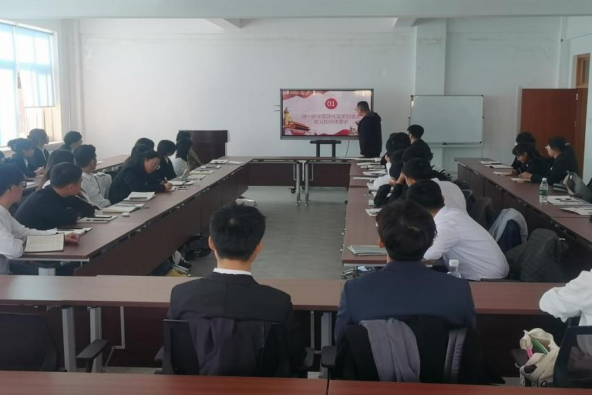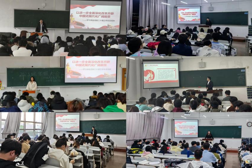 为强化学习效果,深入推动党的创新理论落地生根,各年级辅导员结合青年学生特点,紧密联系学校和学院实际,面向学生进行党的二十届三中全会精神宣讲,引导学生们坚定马克思主义信仰、中国特色社会主义信念、中华民族伟大复兴信心,立报国强国大志向、做挺膺担当奋斗者。此外,学生党员利用班会时间,到各个班级与同学们进行党的二十届三中全会精神的宣讲和交流研讨。