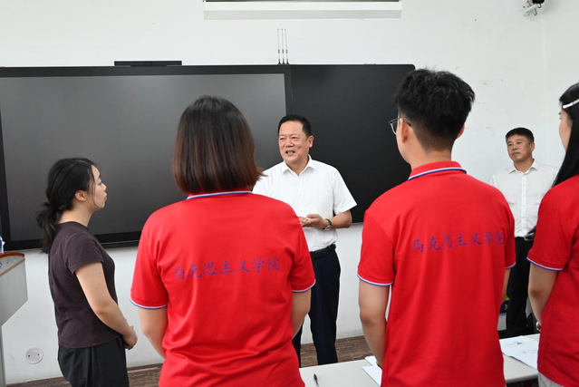 报到期间,校党委书记衣庆焘、党委副书记李智军、副校长刘文合一行冒雨到各培养单位迎新站点,了解招生人数、生源情况,询问实时报到数据,并向所有坚守在迎新一线的工作人员和近200名学生志愿者表示亲切的慰问与感谢,特别赞扬了大家风雨无阻的服务精神。在与新生及家长的亲切交谈中,校领导询问他们的来校感受和实际需求,勉励新同学要尽快适应新环境,主动迎接学术挑战,树立远大理想,勇于创新,争做能够担当民族复兴大任的时代新人。
