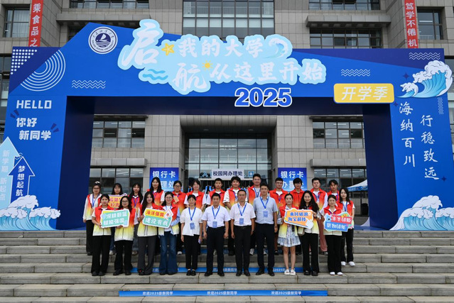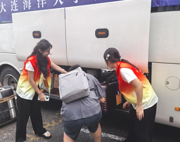 在黑石礁校区的海洋强国广场报到点、大学生公寓志愿服务点,身穿统一服装的师生志愿者们不畏风雨、热情不减,穿梭在人群中。他们或引导新生前往报到点,或协助搬运大件行李,或耐心解答新生关于校园生活的疑问。他们忙碌的身影和湿透的衣背,成了雨中迎新现场最动人的风景线,让新生及家长深刻感受到学校的温暖与关怀。