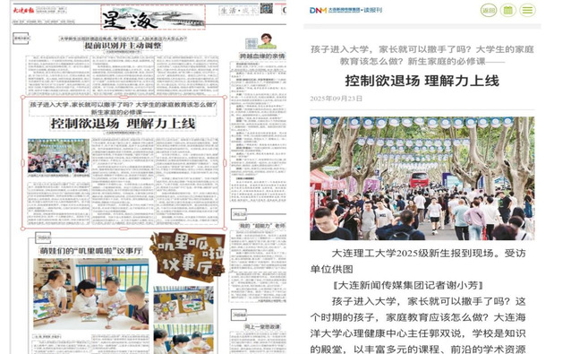近日,大连日报以“控制欲退场 理解力上线”为题,刊发对我校郭双教授的专访,围绕大学生群体的家庭教育问题展开深入探讨。