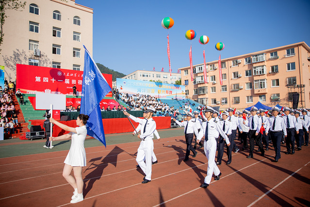 伴随着雄壮的《运动员进行曲》,国旗班擎旗入场,身姿挺拔、步伐铿锵;彩旗方队手持七彩旗帜,翻飞如虹、绚烂夺目;裁判员方队神情庄重、步履沉稳,展现公正严谨之风。各学院、各单位运动员代表步伐整齐、口号响亮,展现出大海大人昂扬向上的精神风貌。看台上掌声雷动,欢呼不断,现场气氛热烈高涨。