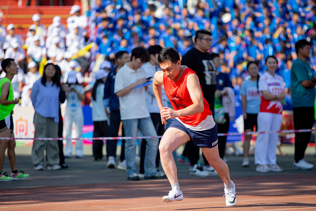 场上,运动健儿们全力以赴、奋勇拼搏:短跑选手俯身起跑、全力冲刺,目光坚定;跳远运动员助跑、腾跃、落地,动作连贯有力;接力赛中,红白相间的接力棒传递着信任与默契,声声呐喊凝聚着集体的力量。他们在奔跑、跳跃、投掷中生动诠释“更高、更快、更强”的奥林匹克精神,展现出新时代大学生蓬勃向上的青春风采。