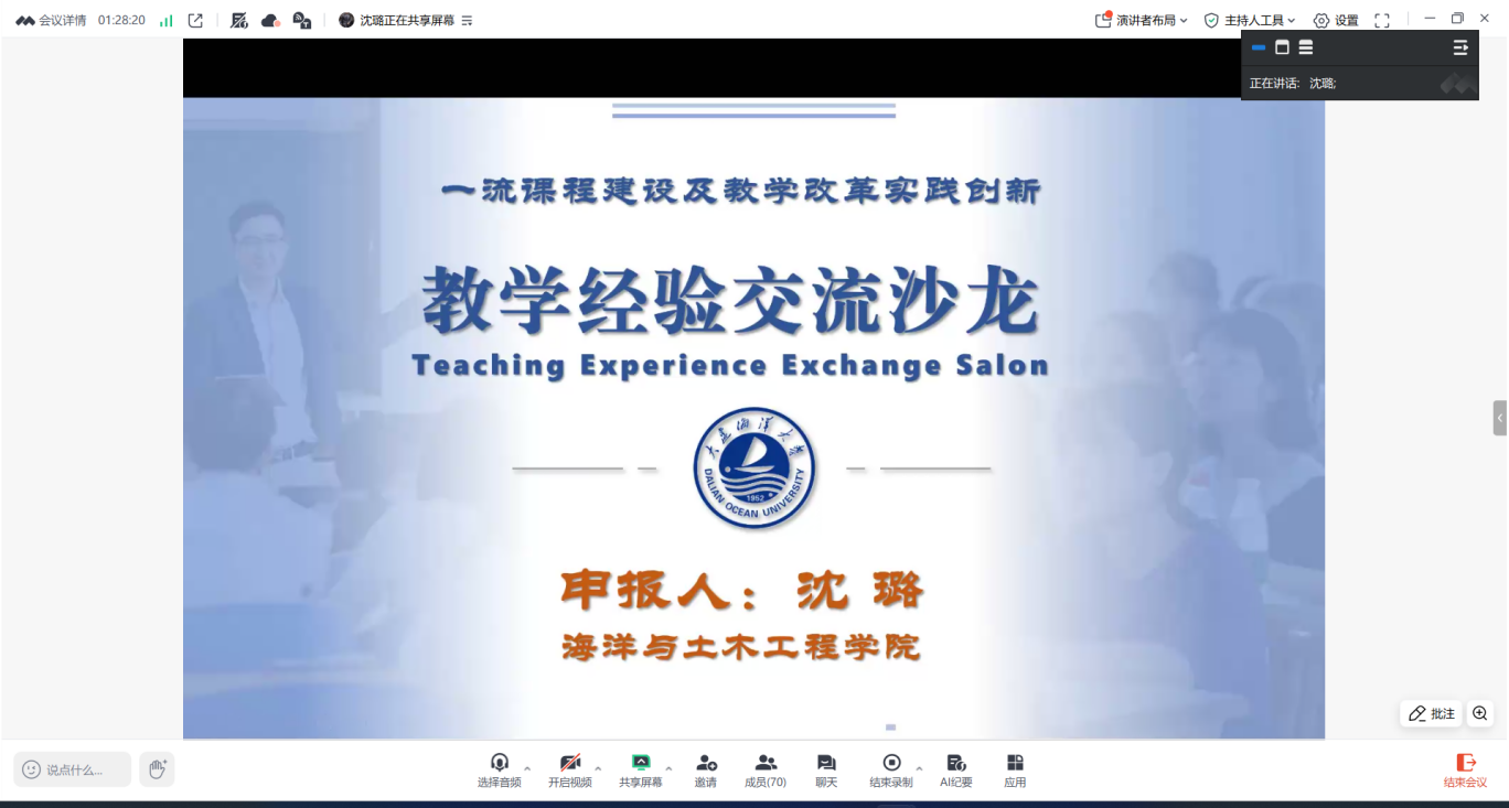 海洋与土木工程学院沈璐教授围绕《一流课程建设及教学改革实践创新》,详细介绍了其在课程建设、教学改革及教学竞赛等方面的创新思路与实施路径。