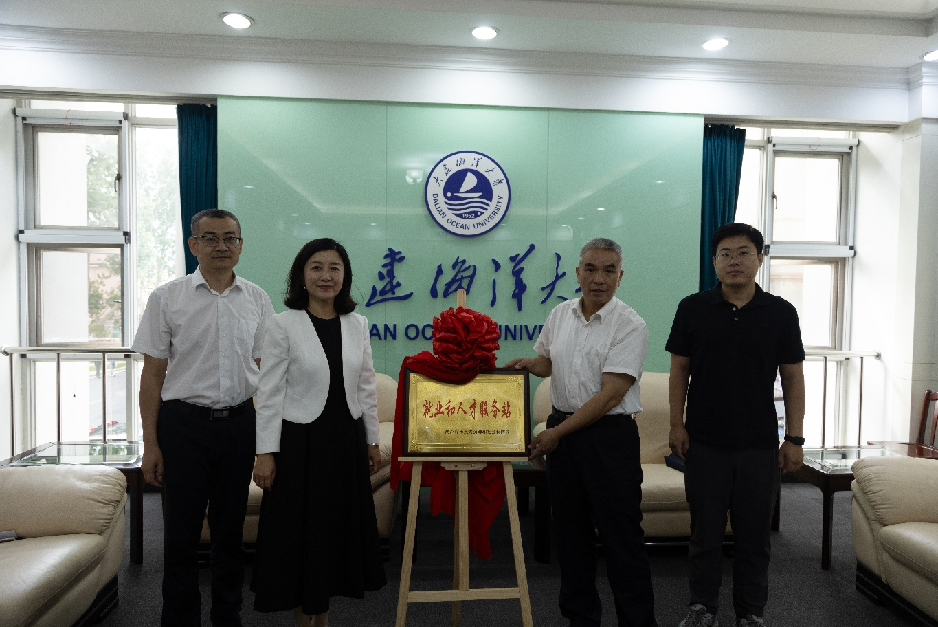 招聘会开始前,葫芦岛市与我校相关部门负责人在图书馆贵宾室进行了亲切交流,围绕葫芦岛市人才需求现状、引才优惠政策及未来政校企合作方向等议题展开深入探讨。双方共同为“葫芦岛·大连海洋大学就业和人才服务站”揭牌,标志着校地合作迈入新阶段。