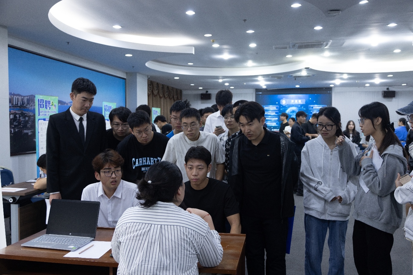 招聘会现场,葫芦岛市劳动和社会保障服务中心书记张国庆向参会学生详细介绍了葫芦岛的城市发展前景、重点产业布局、引才政策及岗位需求。本次招聘会汇聚了经葫芦岛市组织选拔的16家优质企业,包括中国核工业二三建设有限公司、江苏扬农化工股份有限公司、葫芦岛海洋演义生物食品科技有限公司等,提供就业岗位64个,招聘规模近500人,涵盖制造业、信息技术、电气能源等多个行业领域,吸引我校200余名毕业生到场参会。
