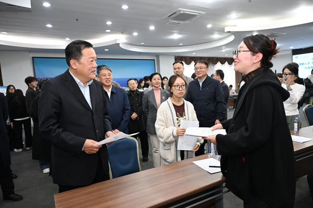10月29日,辽宁省青年企业家协会“青聚人才 共‘企’未来”——“青创|职聘会”食品科学与工程学院2025年秋季专场招聘会在我校图书馆多功能厅举行。校党委书记衣庆焘、校党委副书记李智军出席活动,并与用人单位代表和毕业生亲切交流。