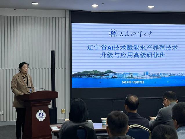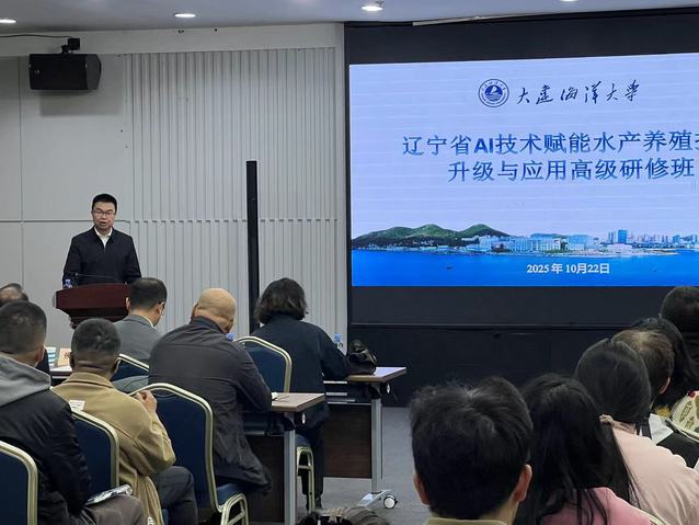 10月22日,由辽宁省人力资源和社会保障厅主办、我校承办的“AI技术赋能水产养殖技术升级与应用高级研修班”在图书馆多功能厅正式开班。来自全省各地的50余名智慧渔业领域专业技术人员参加培训。大连市人力资源和社会保障局服务部王黎,我校水产与生命学院院长丁君、党委书记刘宪杰,信息工程学院院长缪新颖、党委书记张永春,应用技术学院党委副书记(主持工作)王晋清、院长于吉鲲,科技处副处长韩蕾等出席开班仪式。