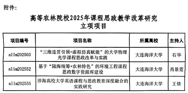 近日,全国高等农林院校课程思政联盟在江西南昌召开第五届全国高等农林院校课程思政建设研讨会,会议公布了高等农林院校2025年课程思政教学改革研究项目立项及课程思政优秀教学案例评选结果,我校3项课程思政教学改革研究项目获批立项,2项课程思政教学案例获评优秀案例。
