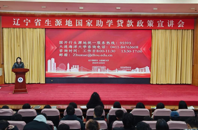 为深入落实国家助学贷款政策,帮助家庭经济困难学生顺利完成学业,12月2日,辽宁省生源地国家助学贷款政策大连海洋大学专场宣讲会在图书馆报告厅举行。宣讲会由辽宁省教育厅统一部署,采用“政策宣传片+现场讲解”相结合的方式开展。全校辅导员、各学院学生代表共计200余人参加宣讲会。
