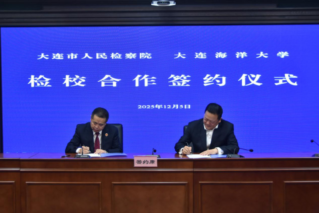 为深入贯彻落实最高检、教育部《关于加强新时代检察机关与高等学校合作的意见》,12月5日,大连市人民检察院联合我校以及大连海事大学、东北财经大学、辽宁师范大学、大连大学五所高校举行签约仪式,并公布了第二批兼职研究员和挂职人员名单。校党委书记衣庆焘应邀出席,海洋法律与人文学院负责人及有关师生参加。
