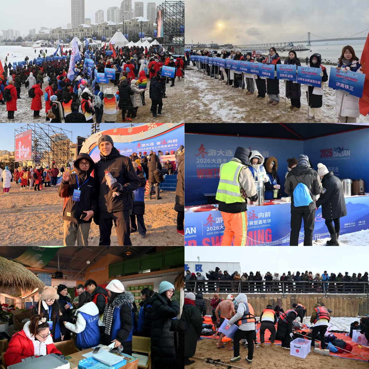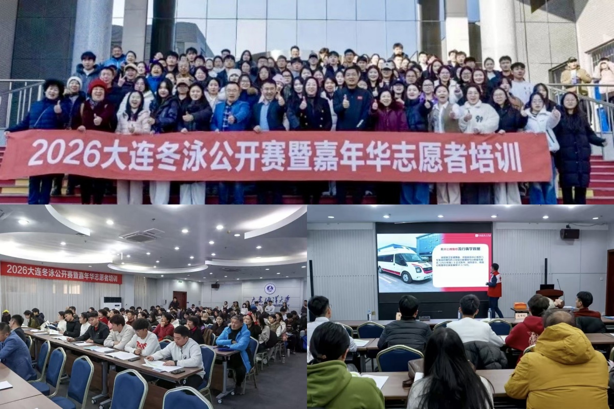 近日,以“冬游大连,奋‘泳’向前”为主题的2026大连冬泳公开赛暨嘉年华在星海湾浴场圆满举行。来自全球的近2000名冬泳爱好者汇聚于黄渤海之滨。其中,由我校100名研究生组成的志愿者团队,凭借专业服务与国际化素养,成为赛事中一道引人注目的风景线。