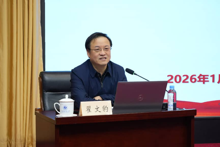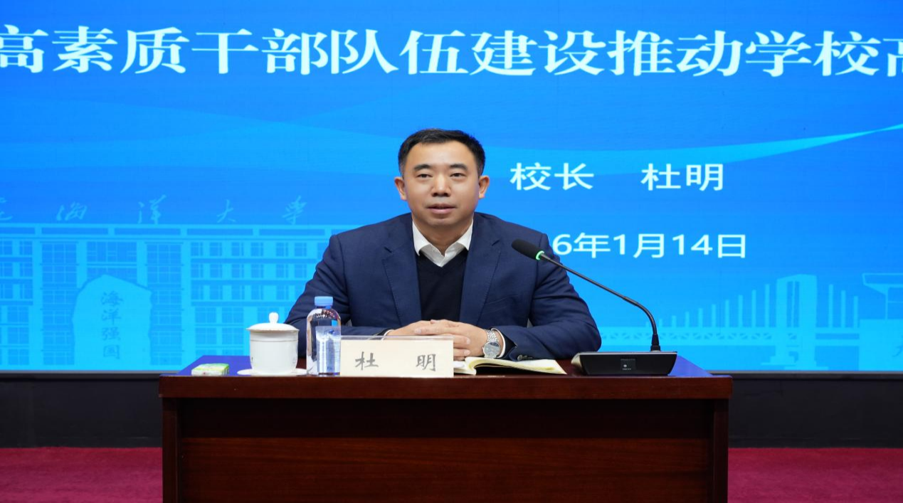 在专题辅导环节,校长杜明以《擎旗铸魂实干担当以高素质干部队伍建设推动学校高质量发展》为题作专题辅导,从“讲政治、懂规矩、守纪律”切入,深刻阐释了新时代高校干部队伍建设的核心要义。