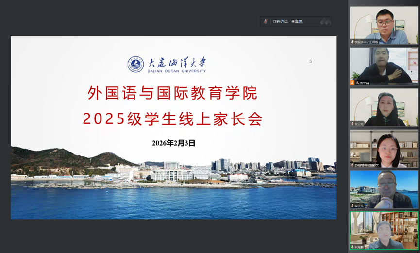 走访结束后,学院召开2025级学生线上家长会,233名学生家长全员参会。会上,院长张宁光介绍了学院发展历程、学科特色、师资力量和近年来取得的丰硕成果;副院长崔永光系统阐述了教学理念、课程体系、学业要求及各类教学资源;党委副书记王利明对学生日常管理、思想政治教育、奖助贷补政策、安全教育及生涯发展规划等内容进行了细致讲解;团委书记李宇晨介绍了学院团学工作的总体布局、品牌活动和育人成果;心理健康中心王莉分析了大一学生可能面临的心理适应问题,强调了家庭理解与支持的重要性;辅导员谢静文总结了学生自入学以来的整体情况与学业特点,并结合专业发展趋势分析就业前景;毕业生代表苏新茹、在校生代表张烨分别结合自身经历,分享了学业规划与成长体会。在交流互动环节,学工队伍成员针对家长关心的留学资源、社会实践、就业支持等问题进行了细致解答,并鼓励学生日常主动与老师沟通联系,更欢迎家长随时咨询。党委书记王海鹏在总结讲话中对家长长期以来的支持表示感谢,强调学院将与家长同心同向,构建更加紧密有效的家校联动机制,全力护航学生成长成才。
