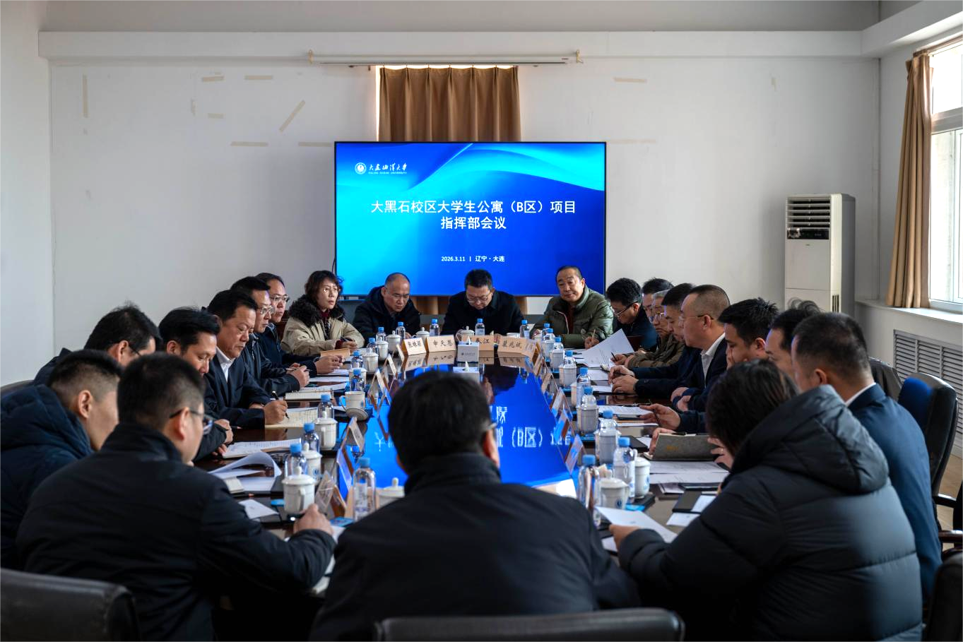 3月11日,我校召开大黑石校区大学生公寓(B区)项目建设指挥部工作推进会,专题部署项目建设各项任务。校党委书记衣庆焘、纪委书记郭新出席会议并讲话。党委常委、宣传部部长邓立志,指挥部各成员单位负责人,项目总承包单位中国建筑第二工程局有限公司、监理单位辽宁宏达建设监理有限公司负责人及相关工作人员参加会议。会议由党委常委、统战部部长、项目建设指挥部总指挥周东旭主持。