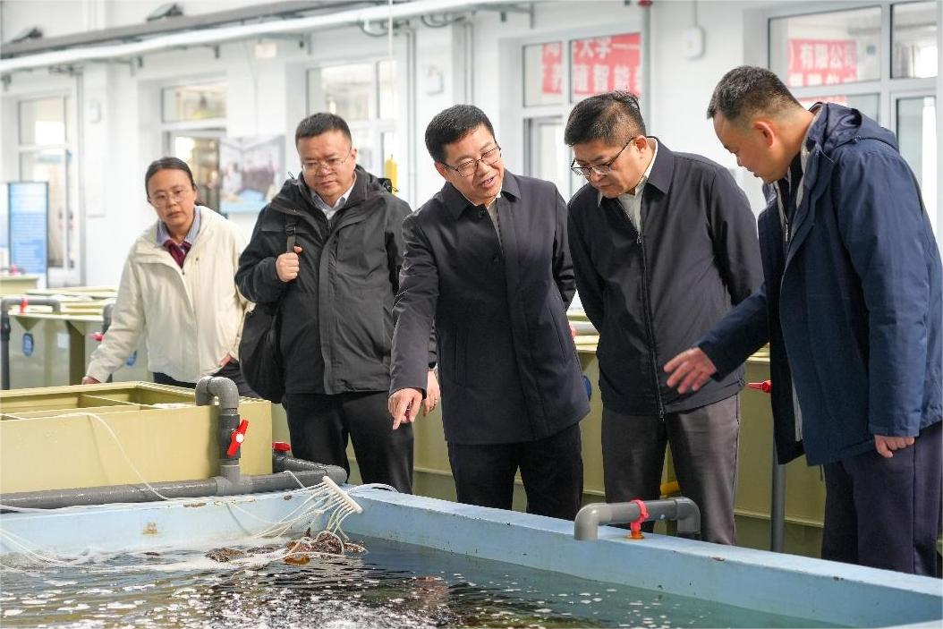 调研期间,吴向未一行先后参观了我校海洋强国广场、黑石礁湾·鱼园、北方海洋数据应用工程中心及现代水产苗种繁育中心,详细了解了学校在水产种质资源保护与良种创新、海洋大数据开发应用等方面的科研进展与成果转化情况。