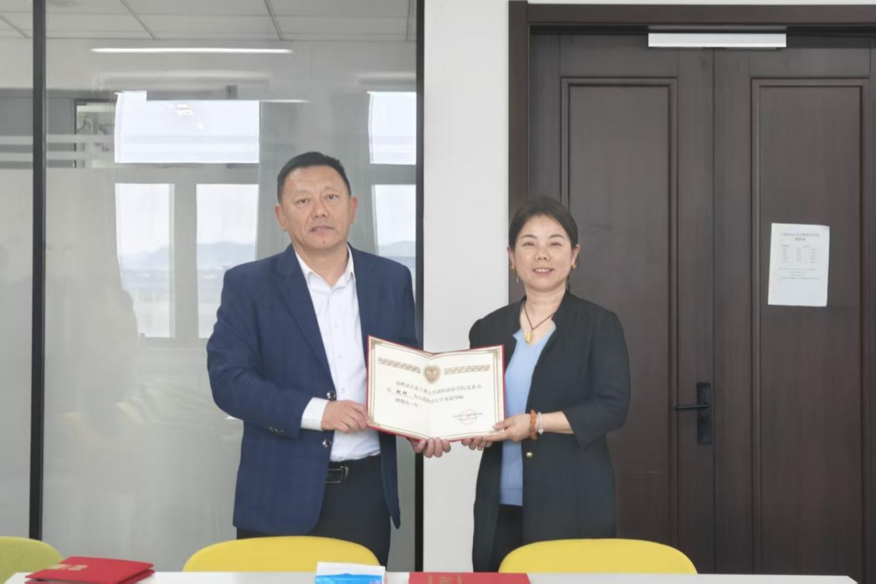 参观结束后,双方举行了交流座谈会。会上,我校创新创业学院负责人郑鹏围绕学院组织架构、师资队伍建设、课程体系、学科竞赛组织、双创活动开展及学生实践等方面,系统介绍了学院的基本情况与工作进展,分享了我校在推进创新创业教育过程中的探索与实践。大连工业大学创新创业学院相关负责人介绍了该院的发展历程、办学特色、工作体系及典型经验,重点分享了在双创教育模式创新、特色项目培育等方面的有效做法。双方就双创教育体系构建、品牌活动打造、师资培养、项目孵化、赛事体系及平台运营等议题进行了深入交流。座谈会后,现场举行了双创导师聘书颁发仪式。